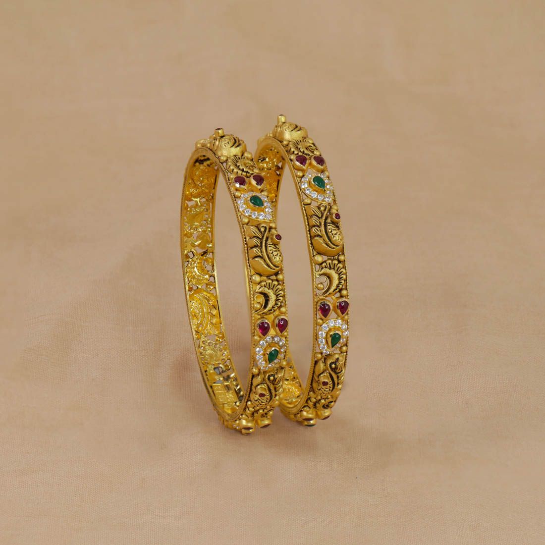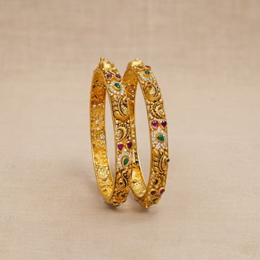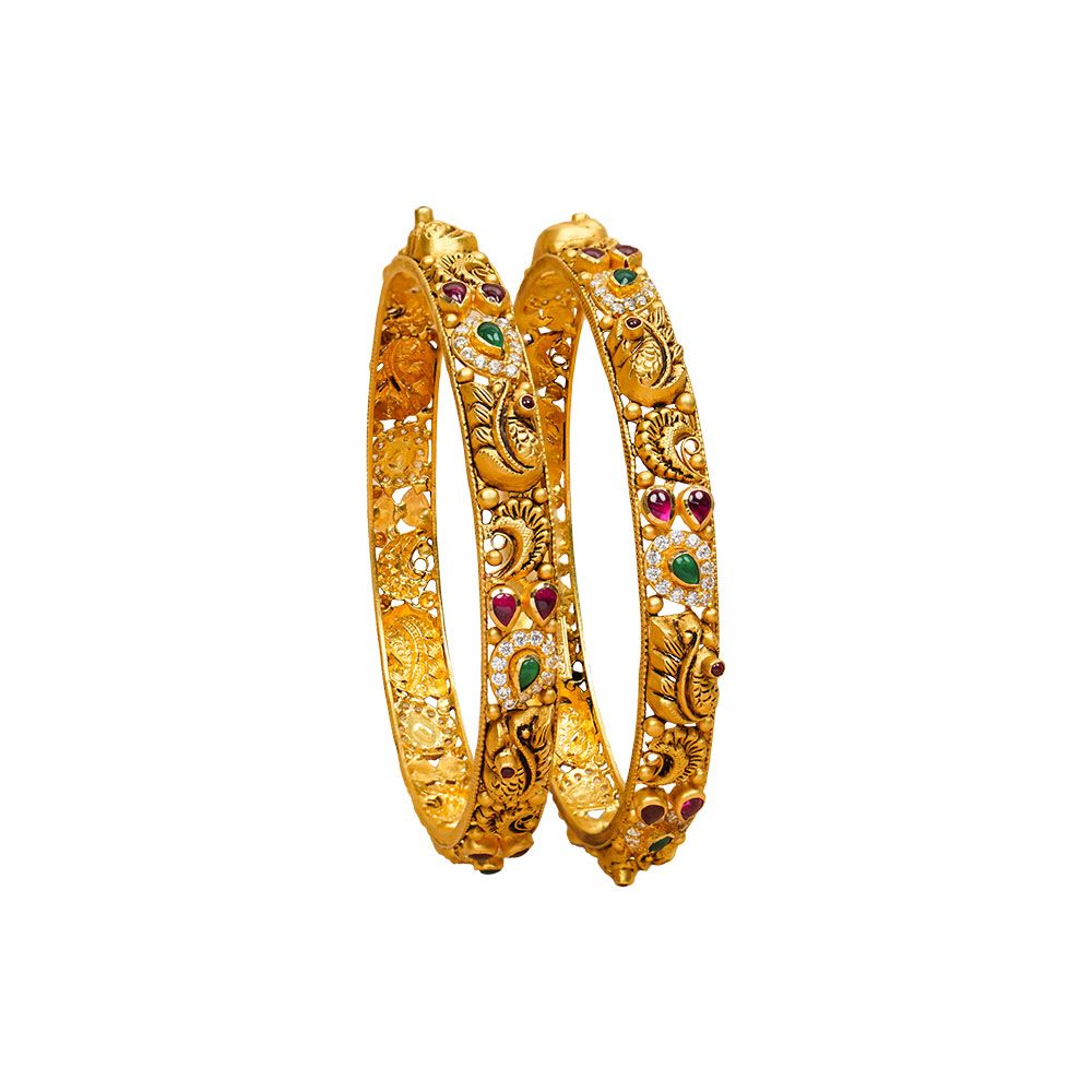 22Kt Gold Antique Peacock Bangles 125VG2117-125VG2120